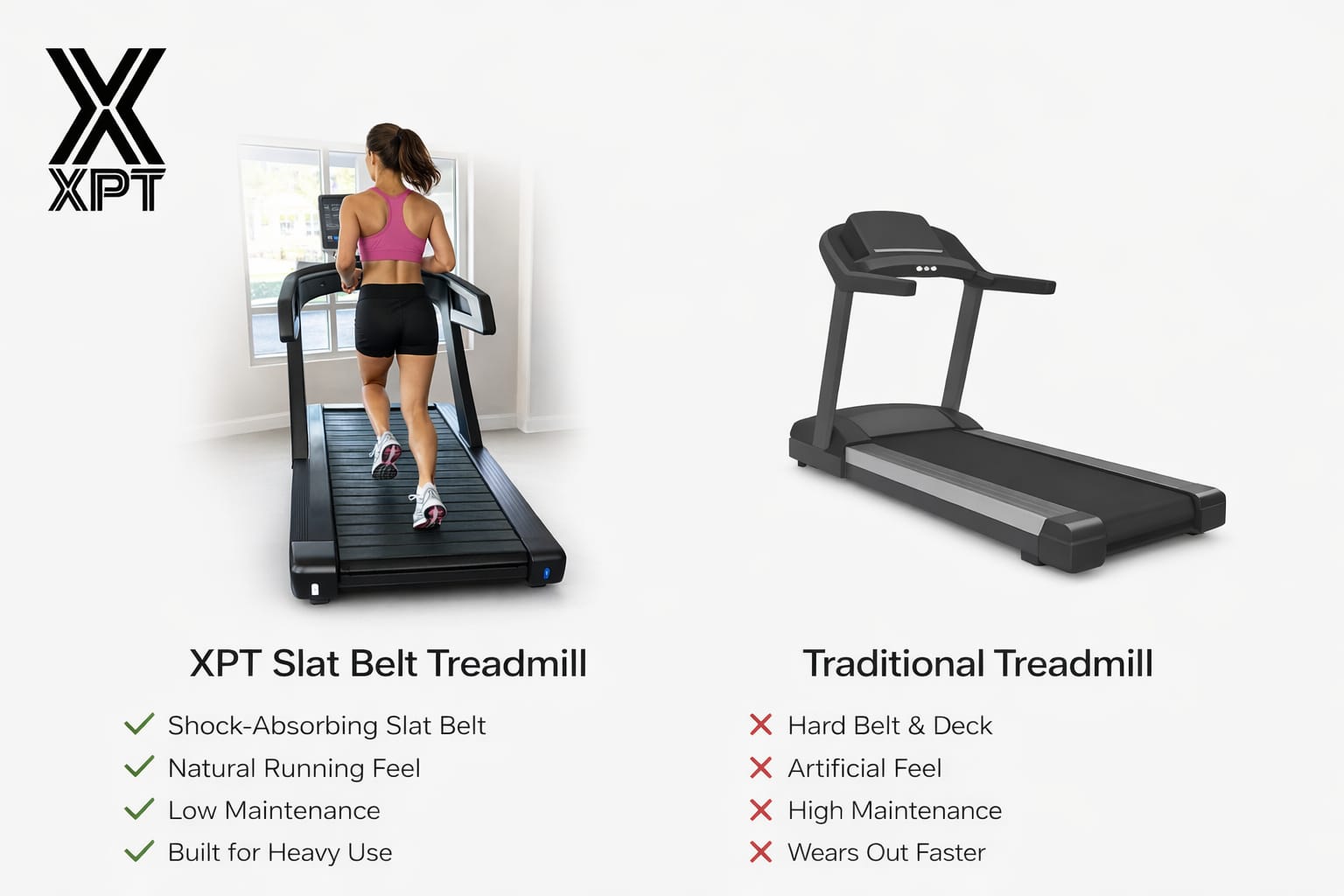 The XPT Slat Belt Treadmill is a state-of-the-art exercise machine designed to elevate your fitness routine to new heights. With its innovative slat belt technology, this treadmill offers a unique and dynamic workout experience that is forgiving on joints, promotes better running form, and caters to all fitness levels. Whether you’re a seasoned athlete or a beginner looking to achieve your fitness goals, the XPT Slat Belt Treadmill provides a safe and efficient way to improve cardiovascular health and enhance overall fitness.